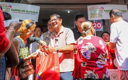 CHEAPER RICE. President Ferdinand R. Marcos Jr. leads the launch of the PHP20 per kg rice program at Zapote Public Market in Bacoor, Cavite on Wednesday (July 2, 2025). A campaign promise of the President, the PHP20/kg rice program is part of his broader agenda to address food inflation, stabilize prices and strengthen agricultural value chains. (Photo from Bongbong Marcos Facebook)
