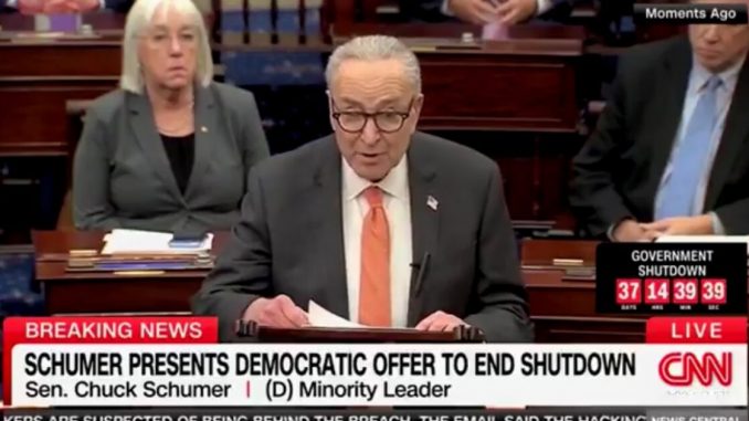 SOURCES: THE GATEWAY PUNDIT – BREAKING: After Holding Americans Hostage for 38 Days, Schumer Unveils New, INSANE Plan to End Shutdown on Senate Floor (VIDEO)