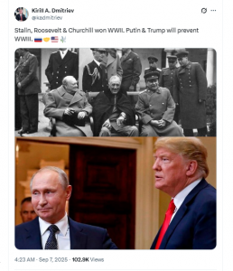 Russian Contradictions: Medvedev’s fiery claim that “WW3 has already begun” contradicted Dmitriev’s peace narrative, revealing sharp divides in Moscow’s leadership tone.