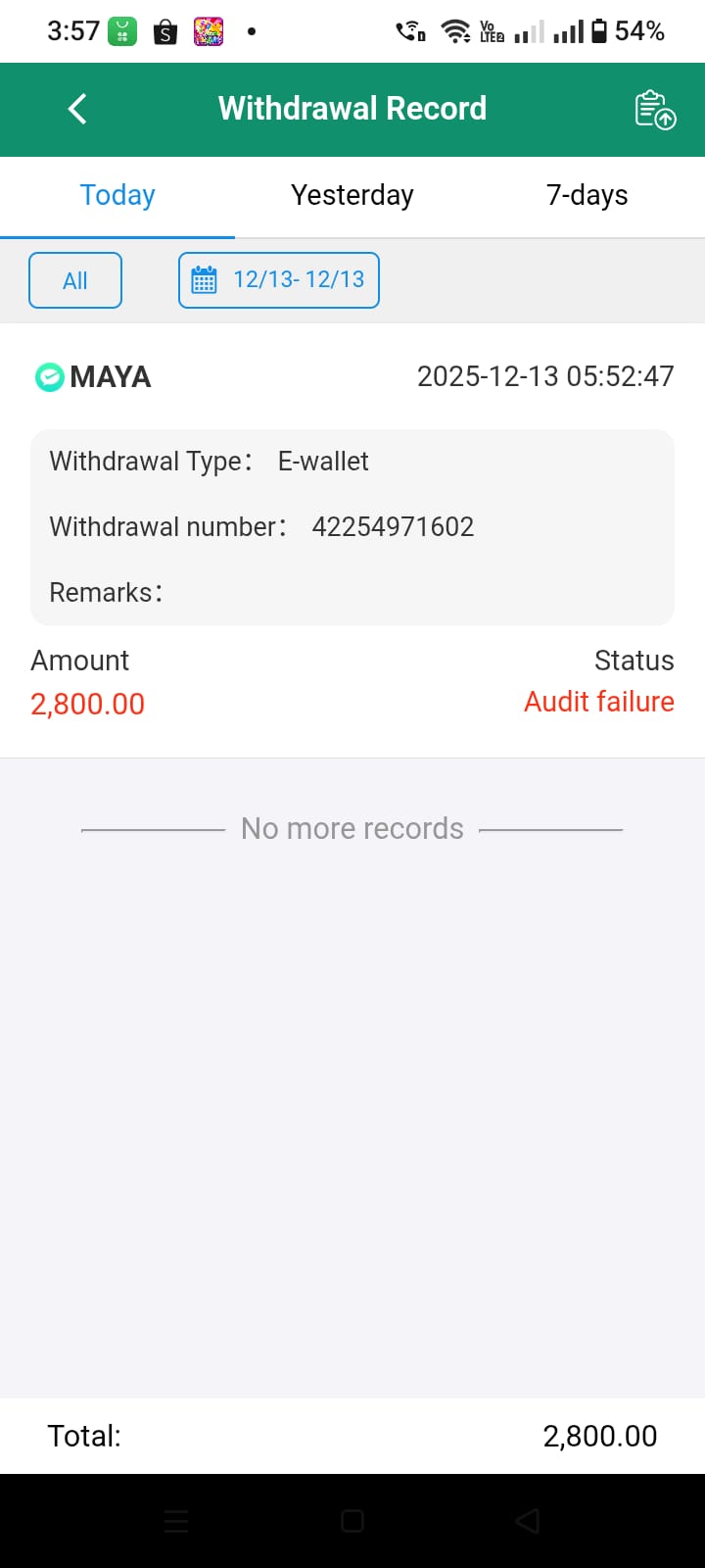 When she wanted to withdraw php 2800,- they used the most common method to steal the players money, “Audit failure,” ref.: