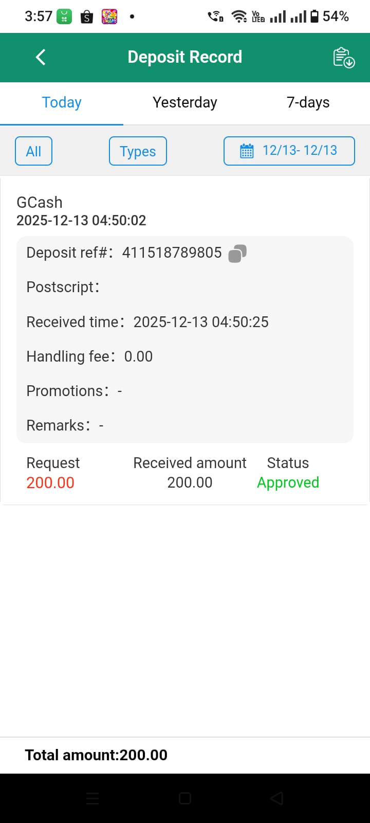 A player deposited php 200, as documented: