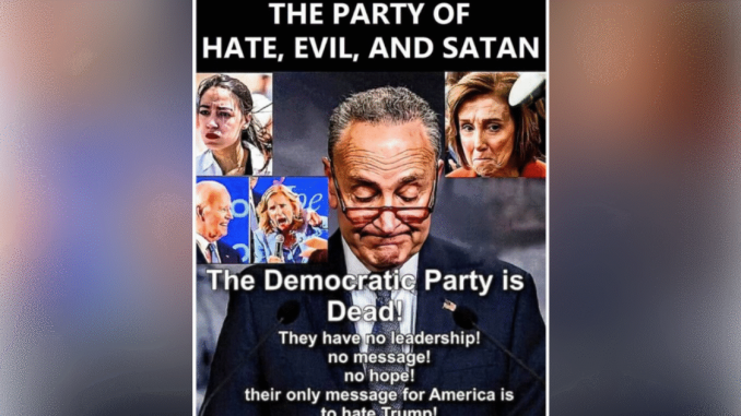 By labeling Democrats as “dead,” “evil,” and tied to “Satan,” Trump is energizing his strongest supporters with religious and moral framing.