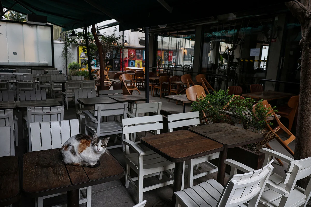 A cat sits at closed cafe, amid the opposition’s calls for a mass economic boycott following the arrest of Istanbul Mayor Ekrem Imamoglu that sparked nationwide protests in Istanbul, Turkey, on April 2, 2025.. Photos by Reuters