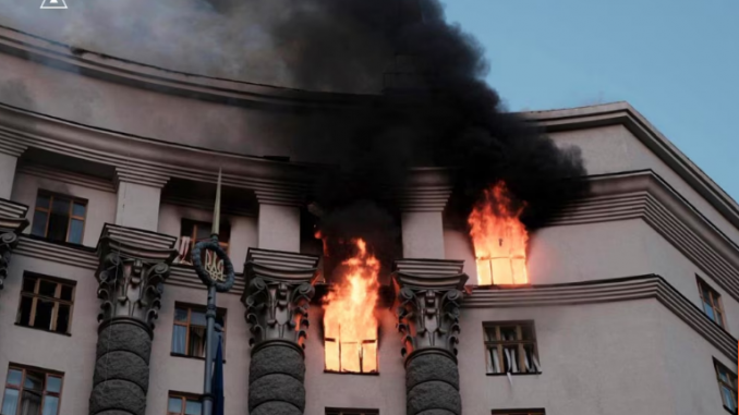 SOURCES: REUTERS – Russia’s largest air attack on Ukraine sets fire to main government building