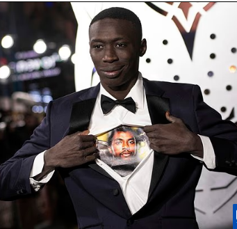 Khaby Lame opens his shirt to reveal the image of Chadwick Boseman upon arrival for the premiere of the film ‘Black Panther: Wakanda Forever’ in London, Nov. 3, 2022. (Photo by Vianney Le Caer/Invision/AP File)