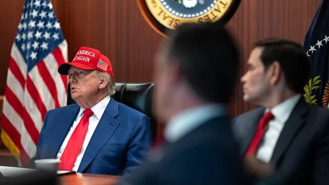 President Donald Trump and his national security team meet in the Situation Room of the White House, Saturday, June 21, 2025. (Official White House photo by Daniel Torok)